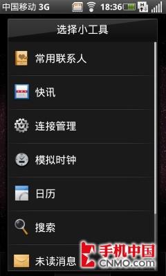 OPhone 2.0默认主屏和三星主屏均支持丰富的桌面插件,我们可以看到,OPhone 2.0中的插件风格与Android系统中的插件风格差不多,只是细节部分有一些改变。在三星主屏中,我们还可以看到有三星特色插件选项,这里的插件大多与生活息息相关,我们可以方便的选择使用。