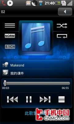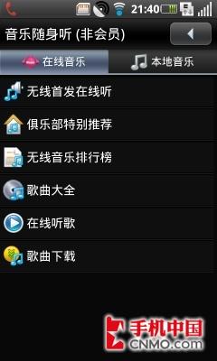 我们在三星I7680的菜单中并没有发现独立的音乐播放图标,但是我们可以打开中国移动开发的“音乐随身听”软件,在这里我们除了可以播放本地的音乐外,还可以点播网络音乐。