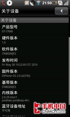 三星I7680的系统信息