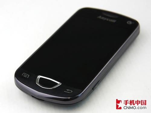 屏幕的下方则是手机的功能键部分,中间不规则的Home键显得格外显眼,银色的边框也一定程度上增加了手机的时尚感。Home键的两侧分别为菜单键和返回键,经过笔者试用,菜单键和返回键的按键较硬。