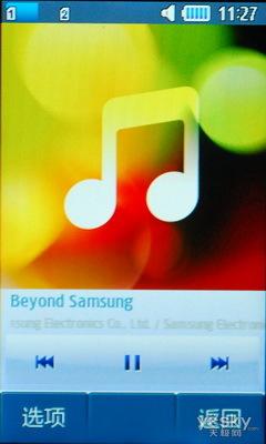 该机内置的音乐播放器支持播放MP3、WMA等主流格式音频文件,对于一款商务风格手机而言,可以满足日常休闲需要即可,虽然3.5mm耳机接口,但SRS WOW音效也足以支持日常娱乐所需。不过值得庆幸的是,三星 B7732配置了独立扬声器,相比W799的听筒兼扬声器的设计而言,在音乐和铃声的功放能力上,B7732更具优势。