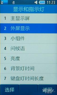 三星B7732最大的特色在于,该机配置了内外双屏,外屏为2.2英寸QVGA分辨率屏幕,可用于显示手机当天状态、来电信息以及时钟功能,回想一下三星W799手机,内外双3.0屏幕,外屏可以实现手机内的主要功能操作,相比之下B7732的外屏就显得相对低端了。在手机的外屏设置选项中,用户可以对外屏时钟和显示内容进行个性化设置。