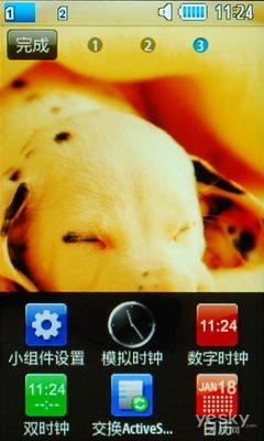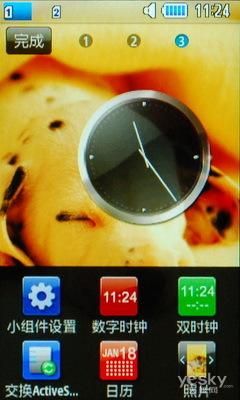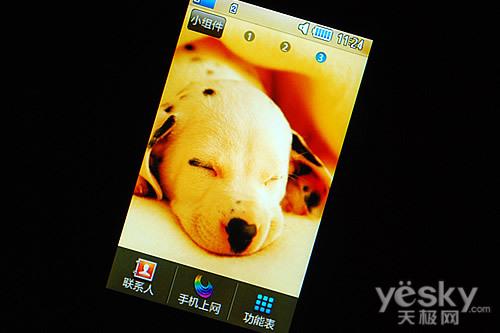 三星触屏手机以TouchWiz技术而闻名,流畅的操作体验和合理的界面设计,让三星非智能手机在触屏领域赢得了不少支持。三星B7732采用了最新的TouchWiz3.0界面,细心的朋友会发现原有的Widget边栏被调整为隐藏式抽屉设计,用户可以将内置组件拖拽至待机桌面,操作十分方便。