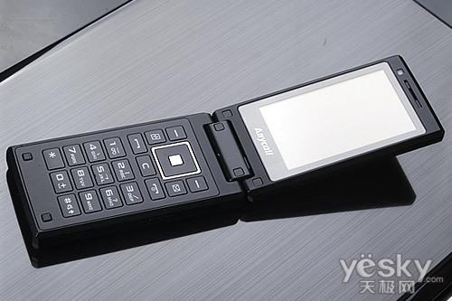 三星B7732手机给人的第一印象便是奢华,虽然静态摆放的手机给人以厚重的感觉,但充实的手感和稳重的造型还是让人爱不释手。机身正面除一块2.2英寸显示屏外,强烈金属质感的拉丝工艺处理面板是手机最大的亮点,并且镜面屏幕与机身面板形成巨大反差,给人强烈的视觉冲击。