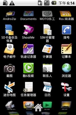 在应用程序方面,Android平台拥有8万个应用程序,虽然与号称拥有22万应用程序的iPhone相比差之甚远,但二者程序数均已过万,再多也是数字游戏而已。摩托罗拉XT502只内置了使用频率较高的应用,如查看文档的Documents To Go、定位的电子地图和轨迹记录器,如果需要更多的应用,就要通过智件园下载,操作非常方便。