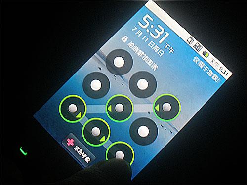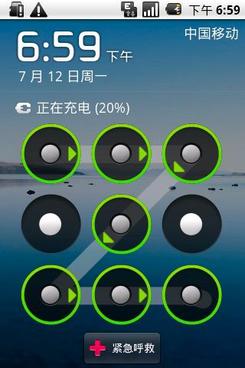 摩托罗拉XT502在支持横向解锁的同时,更是支持设置自定义解锁方式,把屏幕平均分成3X3的九宫格,用手指任意在屏幕上滑动连接四个或以上的圆点形成一个解锁组合动作,可以是代表自己的英文字母,也可以是有趣的图形,只要是一笔连续划过即可。这样设置,同时也能起到密码保护作用,能够有效的保护个人隐私。