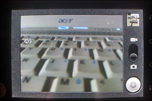 摩托罗拉XT502配备了500万像素镜头,支持LED闪光灯。 进入拍摄界面后,通过轻触屏幕左方调出拍摄设置界面,亮度、饱和度等都可以在此设置。