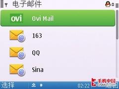 打开诺基亚E5“办公工具”里面的电子邮件功能,首次进入会提示设置新邮箱,在邮箱设置选项中,笔者发现了国内常用的QQ、163.、126等邮箱选项,因为笔者的工作邮箱是与QQ邮箱绑定的,所以就选择了QQ邮箱。