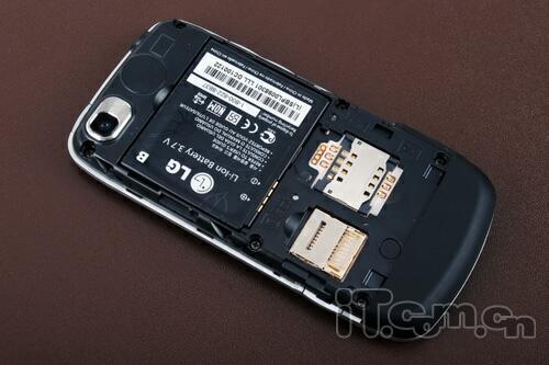 屏幕顶部有LG的产品标识,同时前置的30万像素摄像头,标示这款LG GS500v是支持3G视频通话的,LG GS500v可以支持GSM / WCDMA / HSDPA 3.6网络。
