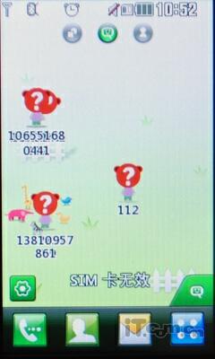 主界面还支持三屏布局,其中有一个界面是LG独有的"Livesquare通讯广场",这个功能可以将用户最近联系过的联系人通过卡通形象在屏幕上显示出来,这样既直观也生动,用户通过卡通形象可以清晰的看见最近的通讯情况——打电话、发短信、或添加新联系人等。而且还可以为"Livesquare通讯广场"设定不同的主题,功能相当强大!