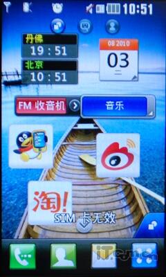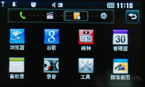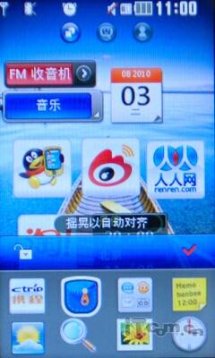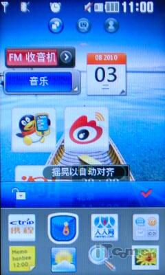 开启LG GS500v后,我们发现这个界面相当的熟悉,虽然LG GS500v并没有采用智能系统,但是方便的触摸操作很是熟悉,除了可以自由拖拽小插件之外,可以分屏的设计也是相当实用的。