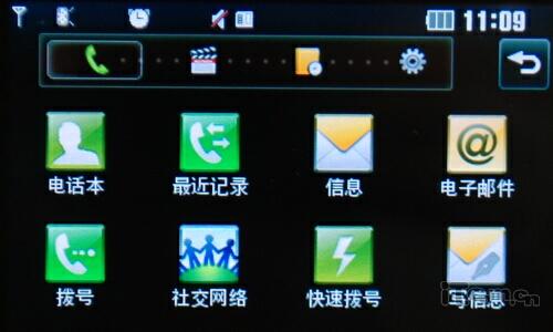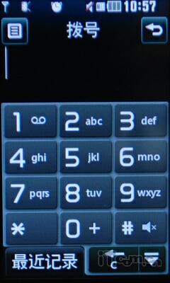 屏幕下方采用了三键式设计,中间的为功能菜单键,左右分别是拨出和挂机键。