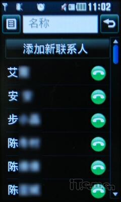 而另外一屏则是联系人名单,用户可以将联系人配上不同的照片,组成一个照片墙的形式,更加个性!笔者使用中发现,此次LG GS500v所采用的界面操作方式和很多智能系统类似,很容易上手,并且界面设置、插件的添加\删除都一模一样,所以完全不会有生疏的感觉。