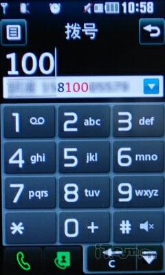 LG GS500v通讯界面的设计采用传统风格;而联系人名单的功能相当强大,只要我们输入号码,联系人中就会出现符合这个号码的名单,模糊查询的方式很方便!底部那个带有人形拨号的按键就是视频通话选项,如果你想和对方视频通话的话,按那个拨打电话即可!