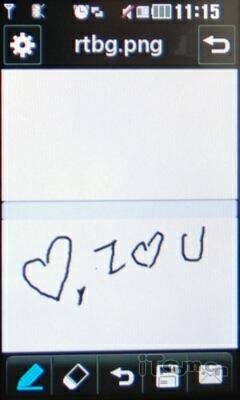 LG GS500v附带的画图软件很有意思,一个简单的简笔画成为传达情意最直接的方式(请原谅小编的绘画功底!)