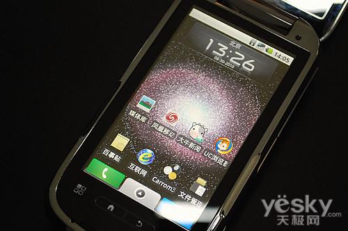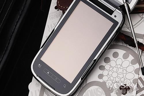 该机搭载一块3.2英寸TFT电阻式触屏,屏幕上方配置有光线感应器,可自适应光线调节屏幕亮度。屏幕下方为四颗热感式触摸按键,但容易产生误操作还是比较遗憾的。