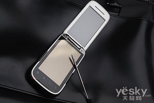 此外,在机身顶端配置有电源开关/屏幕锁,不过按键颗粒较小,操作中还是会有写不适应体现。而在机身底端,隐藏着手机的手写笔。