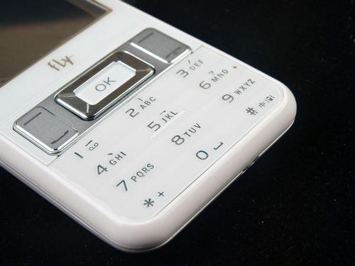 Fly F502的键盘区域的数字键区采用了一体式设计,并且采用了UV转印的工艺,日常使用中不容易出现标识掉漆现象。而功能键则使用了金属材质进行装饰,中间OK键晶莹剔透,操作手感很不错。