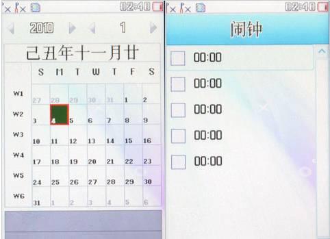 在系统界面上,FLY F502还是很有特色的,首先在硬件规格上F502采用了一块2.4英寸显示屏,分辨率为QVGA(240X320)级别,并且还支持触控操作,在使用当中能够提供很多便利。