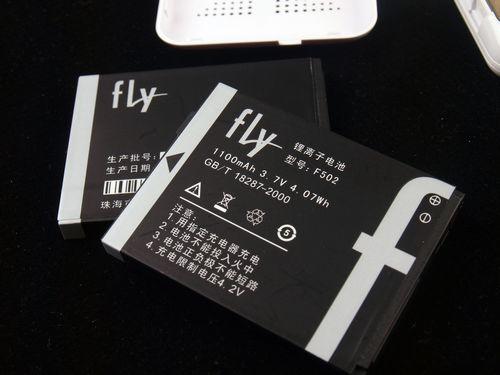 再看Fly F502的续航能力方面,其内置的是1100mAh容量的锂电池配置,在正常使用强度下,Fly F502还是拥有不错的续航时间。另外考虑到年轻用户常通过手机欣赏音乐的特点,对续航要求会增高,Fly F502的标准包装还为用户佩多了一块同样的电池,方便用户替换使用。