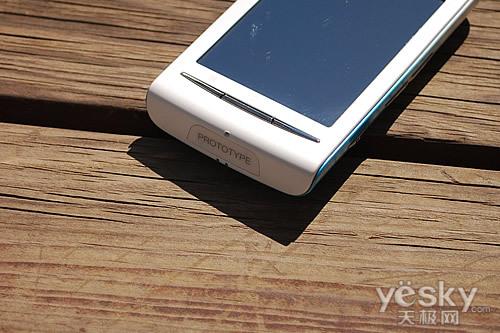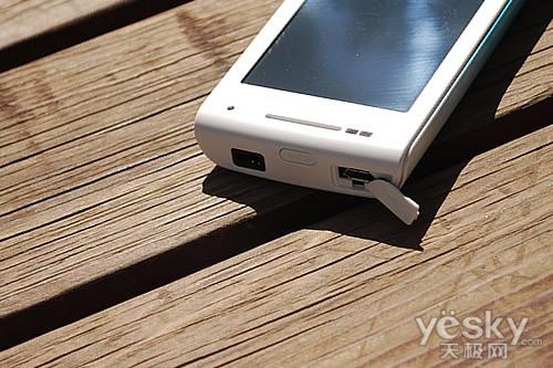 在E15i的机身顶端,我们便可以看到两项接口,人性化的防尘保护盖方式尘土落入接口内,3.5mm耳机接口同时可以接入索尼爱立信专属线控设备,非常方便。同时手机顶端还设计电源开关/屏幕锁键,但该键过于绵软,手感还需提升。在对面的机身底端,E15i并没有设计任何按键与接口。