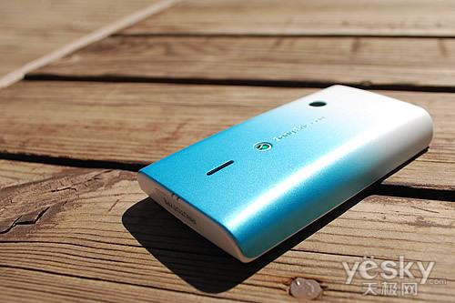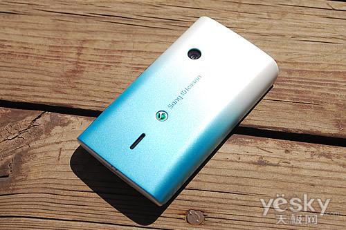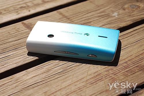 在机背板上,我们看到了绚丽的渐变色彩的设计,个性化的配色非常引人瞩目,同时我们看到了熟悉的弓形人体工程力学设计,近期索尼爱立信出品的手机均采用了这样的造型,虽然在操作上手感更加出色,但过度一直的设计不免让人产生审美疲劳。