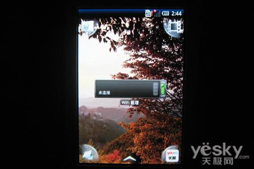 在屏幕的四个角落上分别设置了不同的快捷方式,分别为短信、音乐播放器、拨号盘与通信录,不论屏幕左右切换,快捷方式是不会变化的。值得一提的是,由于手机屏幕有限,所以每一屏只能容纳一个Widget组件,不过该机支持最多20屏的分页,基本上也可以满足快捷方式的排列需要。