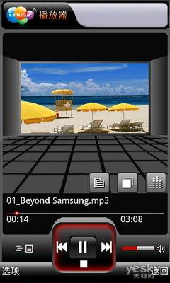 而该机内置的音乐播放器有浓郁的三星风格,虽然同样为Android音乐播放器内核,不支持均衡器等功能,但出色的音效支持和3.5mm耳机介入,都让i909可以跻身优秀音乐手机的行列。