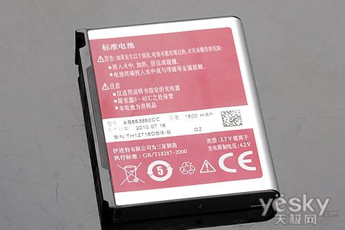 三星i909配置一块1500毫安的锂离子电池,虽然配有1GHz主频CPU,但是在能耗方面丝毫不示弱,在4.0英寸屏幕的映衬下,一天多的待机时间还是非常令人满意的。