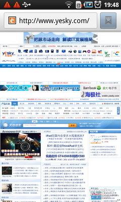 在页面浏览放,由于Android2.1支持多点触摸等实用功能,所以手机在页面浏览上没有操作上的障碍,并且4.0英寸屏幕可以显示更丰富的内容。不过由于该机暂不支持Flash播放,所以页面上会出现大大小小的无法播放。