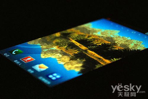 三星i909的屏幕规格达到了4.0英寸,笔者个人认为,4.0英寸屏幕已近达到了操作的极限,更高规格的屏幕尺寸已经会影响到日常操作使用了。在屏幕分辨率方面480×800像素的分辨率,是目前高端Android手机的主流配置,显示效果令人称赞。画面显示极为细腻,颜色也更加生动。但由于屏幕色彩提升,屏幕亮度更高,导致手机屏幕有些刺眼,建议将屏幕亮度开至最低。