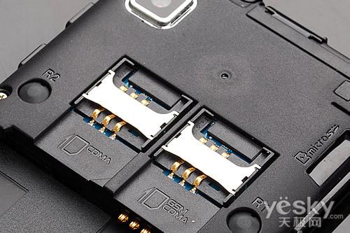 手机的主要接口集中在机身顶端,国际通用制式microUSB接口加盖推拉式防尘保护盖,i909在细节之处的设计还是非常到位的。此外手机支持3.5mm耳机驳接,大大提升i909的多媒体娱乐功能。