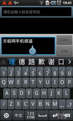 三星i909最大的特点之一便是支持双模双待功能,作为电信旗下的四通道手机,C/G双网自然也是标配,通过机身右侧双网切换键,用户可以实现对两张号卡的自由掌控,便于区分工作与生活。在通信录方面,i909采用名片夹管理方式,支持拼音检索联系人,并可对新添加的名片编辑其全方位信息。三星i909支持通讯录绑定功能,可与SNS网站账号绑定,绑定之后的联系人会被下载到手机中,操作时点击相关的联系人,也可以完成对其社交网站的相应功能。