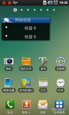 还记得三星S8500么?在i909上采用与三星S8500同样的解锁方式,这也是Touchwiz界面的一个特点,进入待机桌面后可以发现,Android系统已经过二次优化,支持7屏分页,同时下拉幕帘也有所变化,内嵌APN控制器,无需再在桌面上添加组件,节省桌面空间。而主菜单的图标也有着非常浓重的三星风格,二次优化的Android系统在保留原有特点的基础上,让动态效果更加出色。