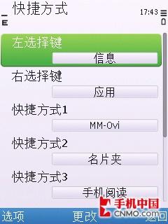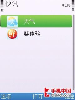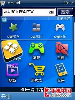 在界面中,当我们选中上面的三个图标时,会进入到诺基亚Ovi的界面,而点击下方的图标则是进入到移动MM商城的界面。这样的设计一方面可以方便我们操作之外,还在一定程度上丰富了手机的应用。