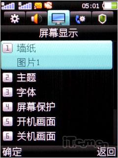 由于OPPO F19所配备的屏幕并不支持触控功能,因此在前作身上看到的Widget操作模式并没有出现在OPPO F19身上,取代之的是独特的功能菜单。功能菜单为一时针式(或车速表)设计,用户可通过导航键的左、右向进行逐一操作,也可通过上、下键一次性跳过两个功能图标进行操作。另外OPPO F19还内置了两款主题选择,并支持淡入淡出等屏幕切换效果。
