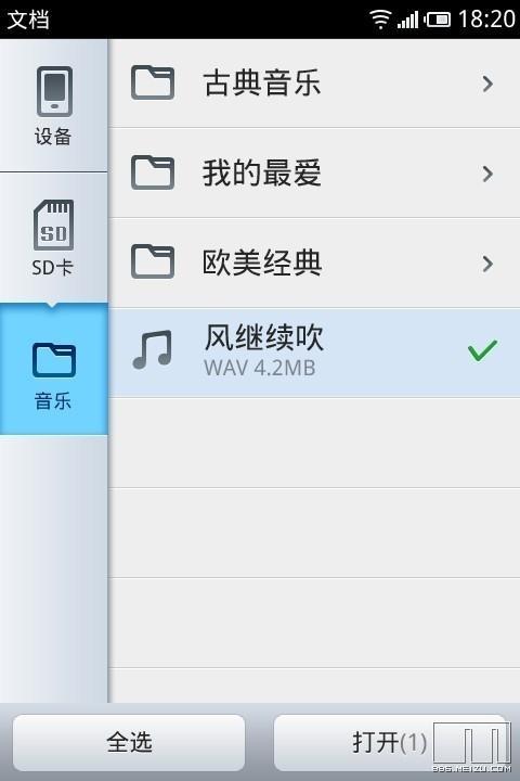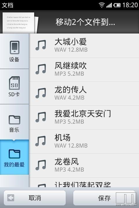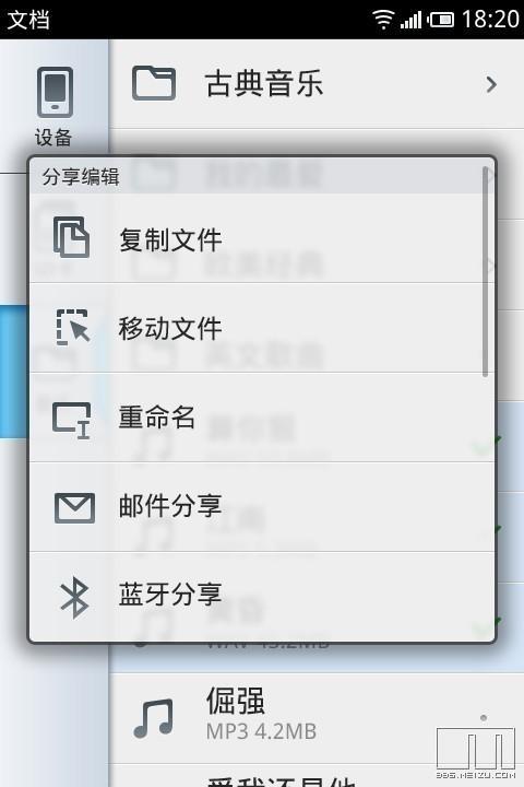 文件管理器界面依然采用了魅族M8的左侧导航栏方式,从界面中我们可以得知,魅族M8是支持SD卡的。文件管理器同样支持文件的移动,在界面中我们可以知道文件的大小以及格式。