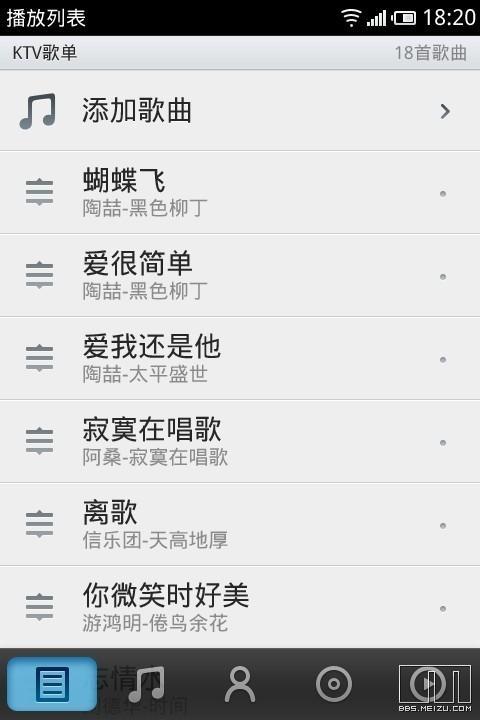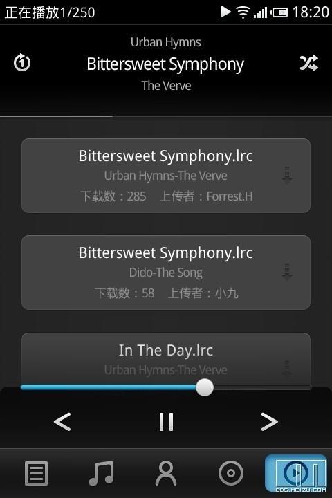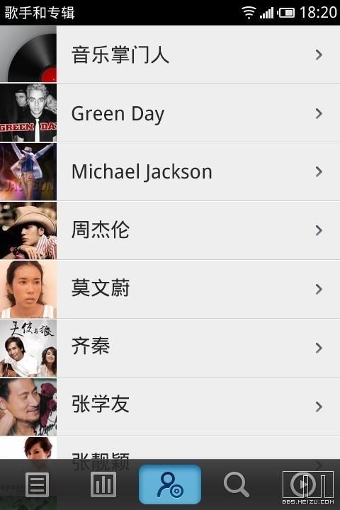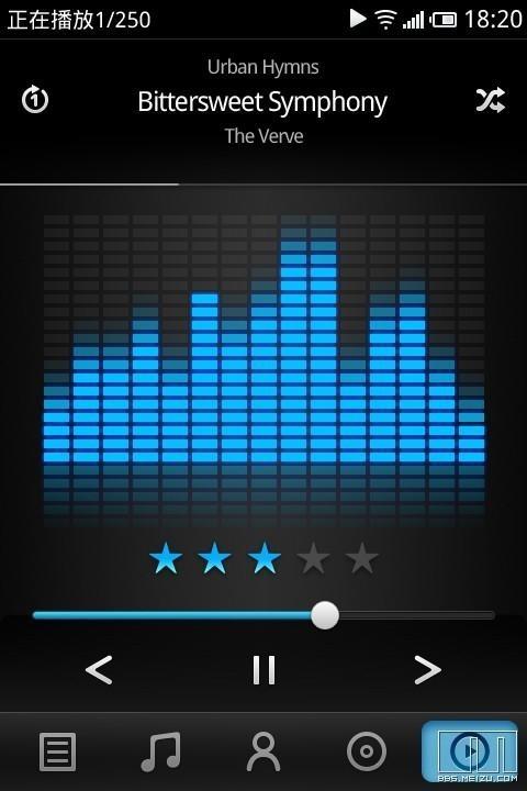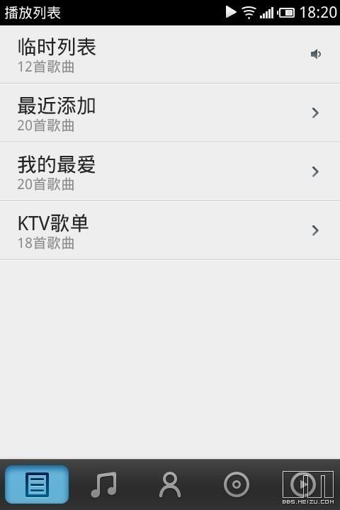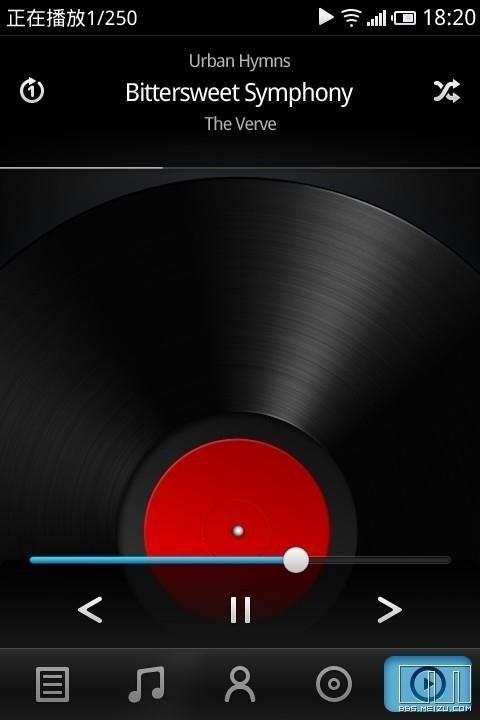 J.Wong这次为我们带来最多的便是音乐界面了,虽然说整体的风格依然与魅族M8很是相似,不过在很多细节方面我们可以看到一些改观,例如在底部的标签图标部分则采用了更为简洁的样式,而且过渡效果也更加顺畅。