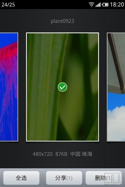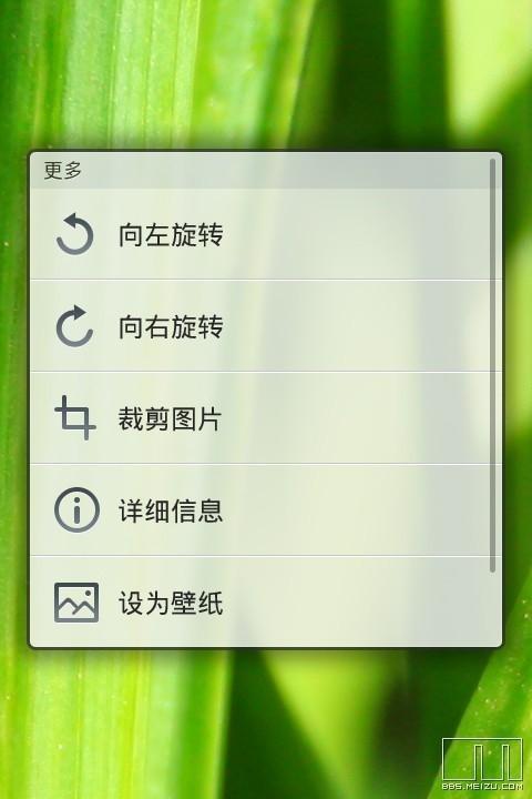 魅族M9的图片浏览器界面则采用了Android 2.1的风格,只是我们在这些界面中无从得知是不是支持动态3D效果,在图片浏览界面的底部,拥有小幅的图片缩略图显示,可以让我们快速选择图片,不过 J.Wong这次曝光的图片分辨率太小了,我们无法体验到魅族M9那细腻的屏幕带来的显示效果。