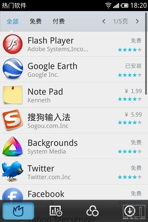 魅族M9同样支持添加魅族的账户,笔者猜测还会使用魅族自己的软件商店,因为根据此前的消息,魅族的开发者社区中已经添加了Android软件分类。