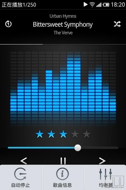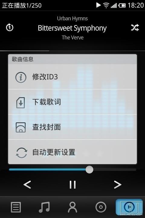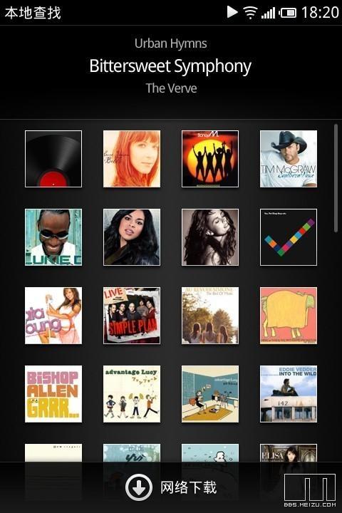 魅族M9的音乐播放器同样支持华丽的专辑封面功能,而且原生支持专辑封面的在线下载,这一点许多手机都是不支持的,根据笔者了解到的消息,魅族拥有自己的服务器,用于给用于提供专辑封面与歌词的在线下载,这也是让我们感到非常贴心的功能。
