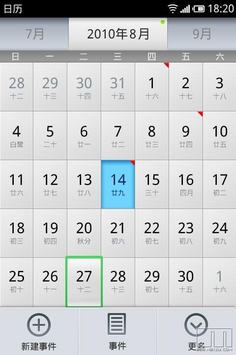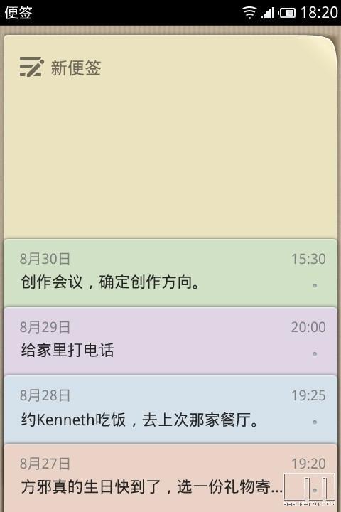 日历、时间、电子书以及便签等常用功能界面方面,同样保持了魅族M8的界面风格,只是在细微的地方有所改进。例如魅族M9的便签界面同样是不同颜色的便签样式。