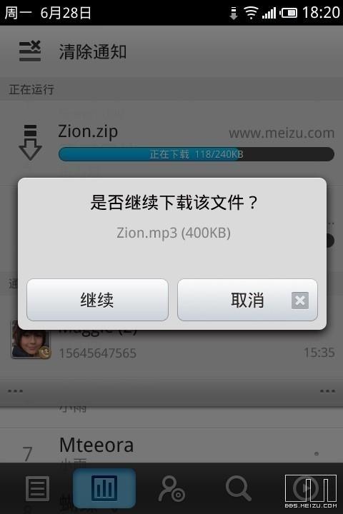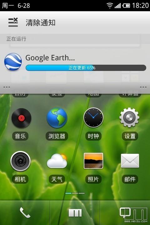 魅族M9同样支持下拉式的任务栏,不过这次因为采用的是Android系统,所以在任务栏的功能上会有所增加。