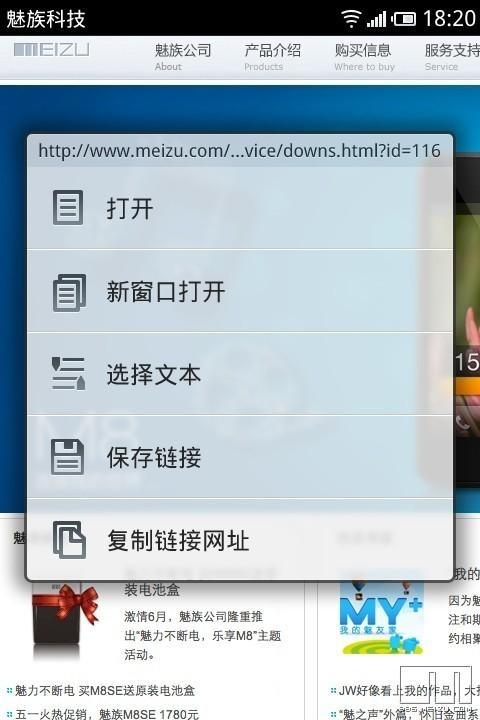 网页浏览器方面也经过了重新的设计,图标方面有了一些变化,简洁的按钮显得非常的漂亮,也可以让我们专心的去使用手机。在对网页链接进行操作的时候(猜测是常按链接)会弹出透明的操作窗口。