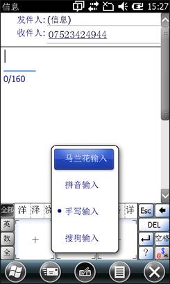 WM6.5原生的信息界面是在不敢恭维,看久了甚至让人丧失发信息的欲望。输入法方面,琦基V800支持马兰花输入(其实就是一种增强版的手写输入),拼音输入和手写输入等,手写识别程度很高。当然也可以安装如搜狗等更多的第三方输入法,提高输入速度。
