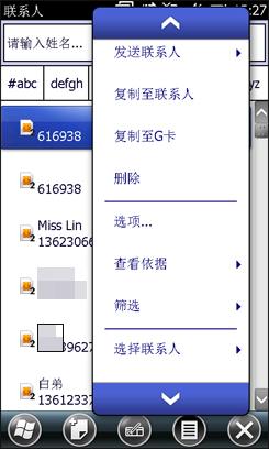 通讯录方面,用户可以方便地在C网卡,G网卡和手机存储的联系人之间切换和相互复制,当然也可以借助ActiveSync等备份软件把联系人备份到电脑,安全性很高,使用也很方便。