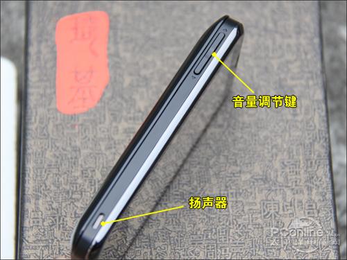 琦基V800的机身四周同样也是简洁至上。机身左侧,狭长的音量调节键手感不错,下来则是手机的扬声器,当然把扬声器放到机身侧边的设计比较非主流,不过这样可以防止手机平放时掩盖了扬声器的声音,也算是一个比较人性化的设计。