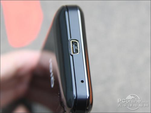 机身底部则是用于充电和数据连接的miniUSB接口和mic孔。