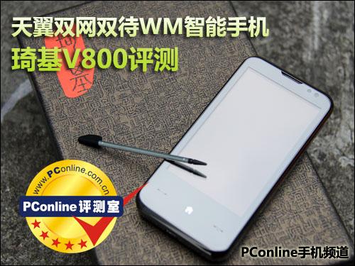 今天来到我们评测室的琦基V800从型号上看是V880的小小降配版。依旧搭载Windows Mobile6.5系统,支持EVDO 3G网络和GSM 2G网络双模双待,搭载600MHz+400MHz Qualcomn MSM7627+MT6223的CPU处理器和512M+256M的ROM+RAM组合,3.6寸分辨率达到480x800 (WVGA级别)的电阻屏和500万像素支持自动对焦的摄像头更是使其如虎添翼。下面就进入评测时间,看看琦基V800表现如何。
