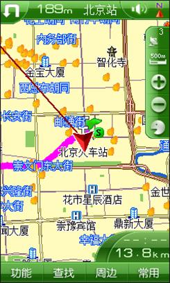 琦基V800内置了GPS模块,预装了凯立得移动导航系统软件,随机附送的2GmicroSD卡上也已经装好了地图。凯立得移动导航系统有着行程规划,地址簿管理,轨迹管理,智能地点查找,模拟导航等多种功能,对于有车一族来说是非常实用的软件。